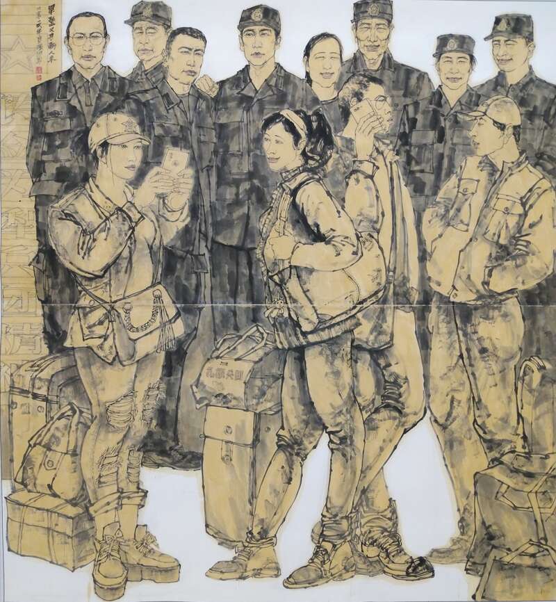 展览以“铸牢中华民族共同体意识”为主线,将兵团精神和胡杨精神、老兵精神融入艺术表达。从魏德友老人的界碑坚守,到新时代青年扎根边疆的身影;从广袤棉田的温暖洁白,到胡杨林的生命金黄……兵团70余年的奋斗史诗在笔墨色彩中“立”了起来、“活”了起来。