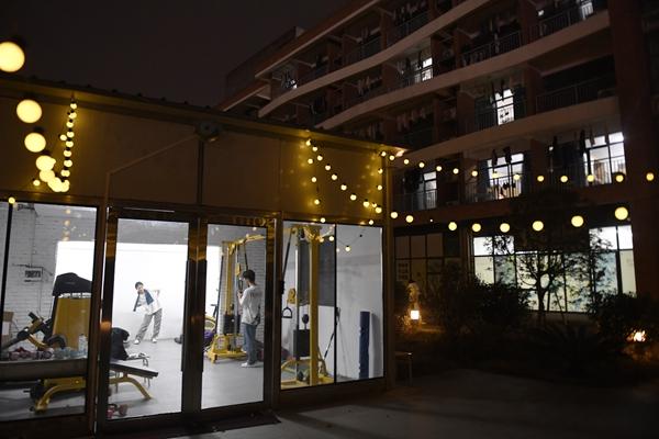 在山下的南昌市区,一个旧厂房改造的商业园区里,一家备考中心独享了园区的一大片区域。除了提供自习室、住宿外,这里还为备考生配备了食堂、便利店和健身房。