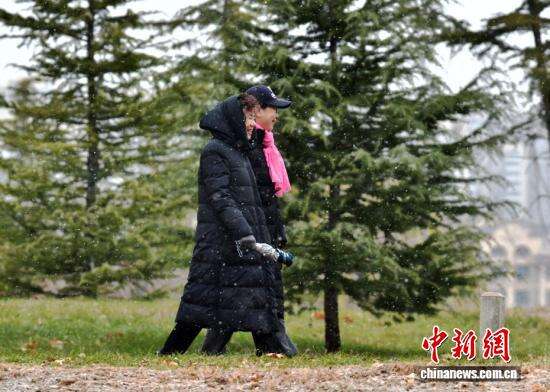 12月12日,北京城区出现明显降雪。图为市民在雪中出行。