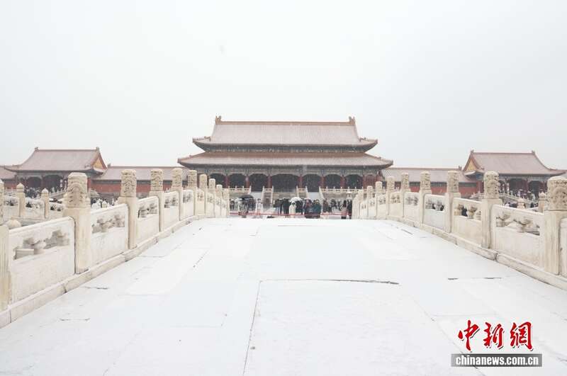 12月12日,北京市迎来2025年入冬以来首场降雪,雪中的故宫博物院银装素裹。