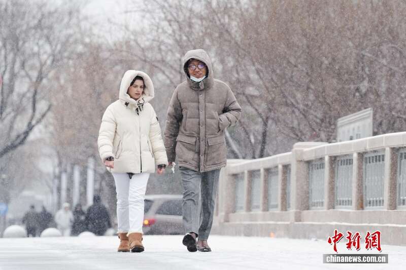 12月12日,河北石家庄,市民雪中出行。当日,该省迎来降雪降温天气,大部地区小雪到中雪,局地有大雪,个别地点有暴雪,多地气温大幅下降。