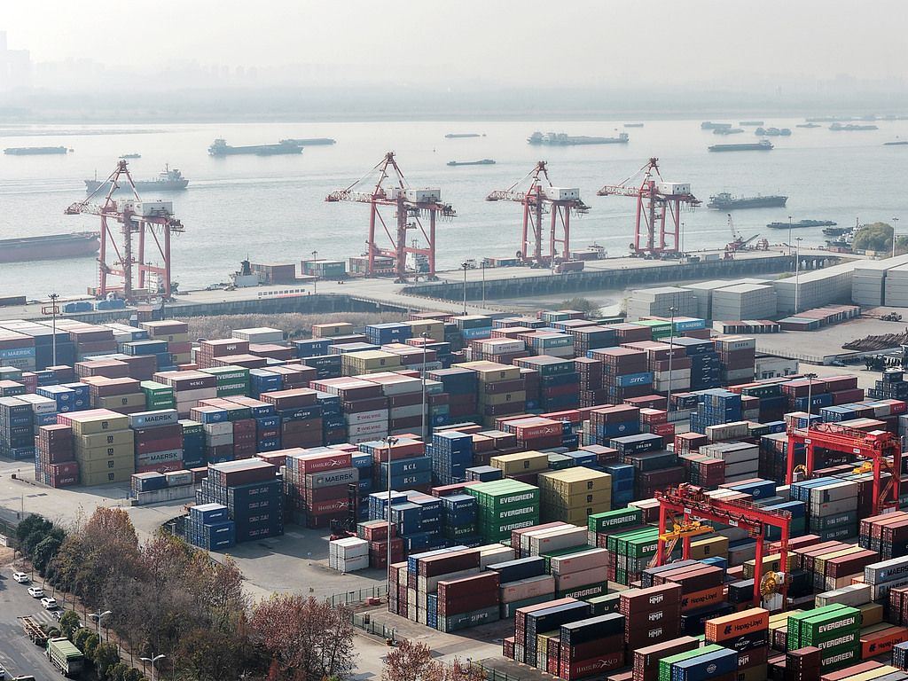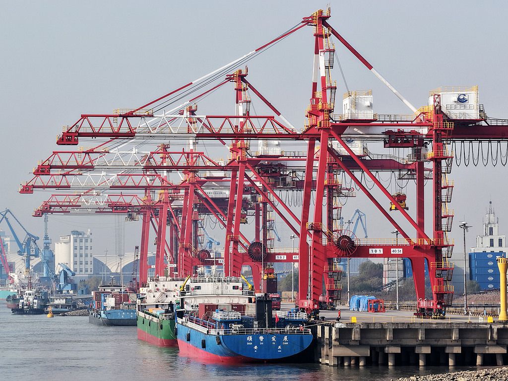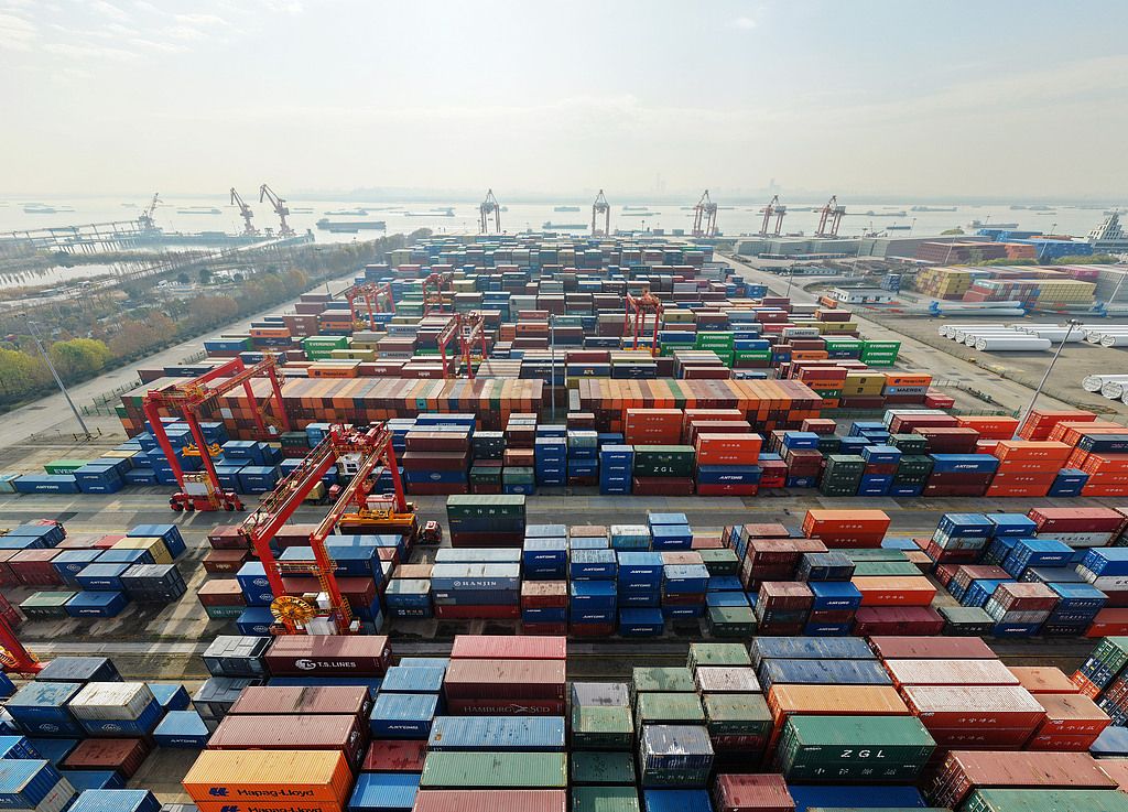 2025年12月16日,江苏省扬州市,临近年末,江苏省扬州港码头有序高效运行,卡车在集装箱堆场往来穿梭,岸桥高效运转装卸船舶,一派繁忙景象。国家统计局12月15日发布数据显示,今年11月,货物进出口增速回升。我国货物进出口总额38987亿元,同比增长4.1%,比上月加快4个百分点。