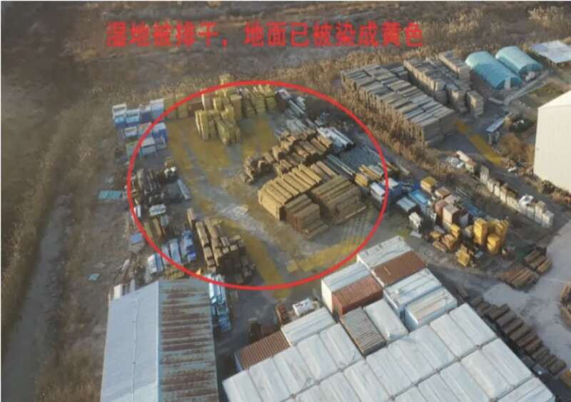 督察组还指出天津部分湿地保护缺位。宁河区天驹建筑材料有限公司将约21亩湿地排干,用于建设厂房和物料堆场。场地内露天堆存大量废旧栏杆等物料,因除锈喷漆作业,地面已被染成黄色。蓟州区张毕庄村南侧一处湿地堆填大量建筑垃圾,填埋量约7.2万立方米,侵占湿地13.5亩。此外,部分自然保护区也被违规占用,堆存大量建筑垃圾。