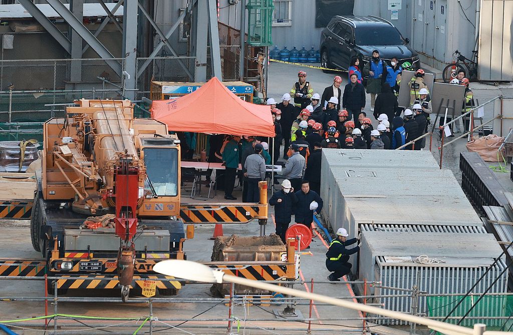 韩国首尔一地铁施工现场发生钢筋坠落事故