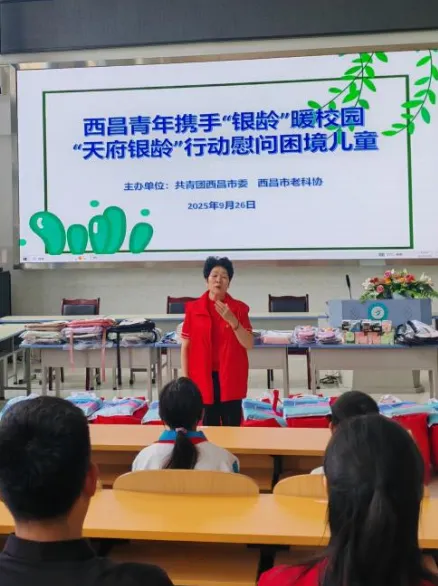 团会东县委 、 团西昌市委、 团越西县委、 团喜德县委组织 银龄志愿者、西部计划志愿者及青年大学生志愿者开展“天府银龄 牵手关爱”志愿活动。志愿者陪伴困境儿童、留守儿童、青少年,开展学业压力和同伴矛盾的调节方法分享,家乡发展故事分享,课业辅导、绘画教学等服务,带领孩子们举办红色音乐会,学唱红歌,并赠送文具慰问品。