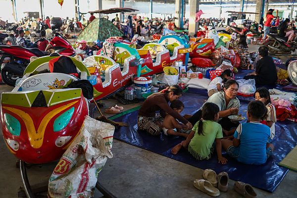 当地时间2025年12月18日,柬埔寨班迭棉吉省蒙哥布雷,柬埔寨与泰国边境冲突持续,当地居民在一个由湿货市场改造的难民中心避难。