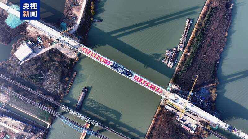 世界在建最长高铁桥梁进度刷新 跨京杭运河斜拉桥顺利合龙