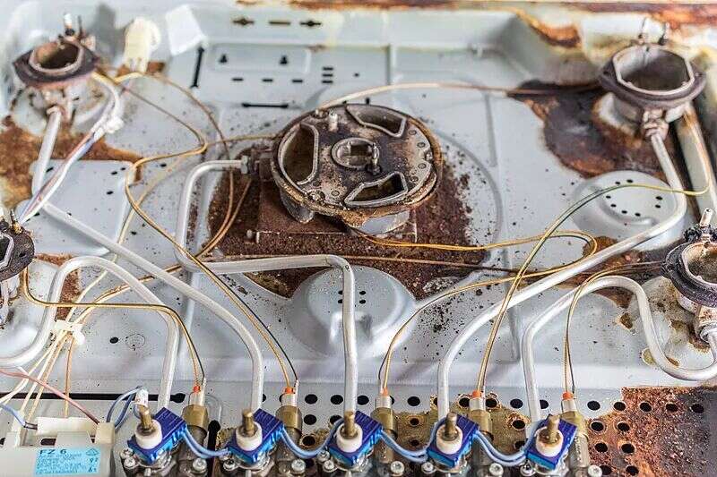 三看外观:灶具主体发生变形或破损,管路发生严重锈蚀,应立即更换。