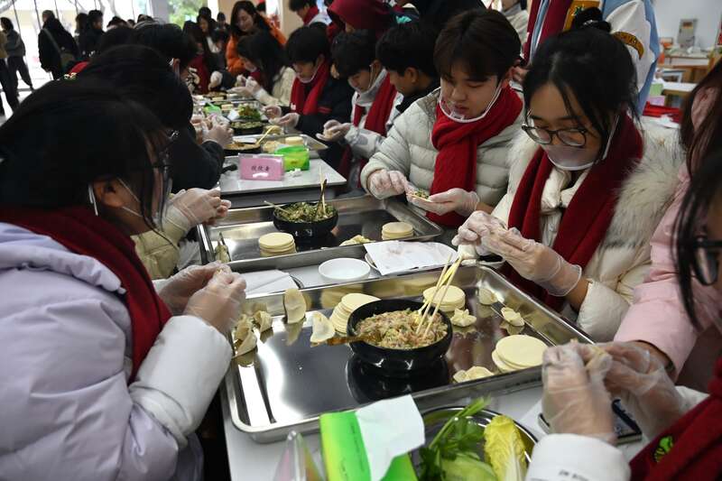 中国青年报客户端讯(中青报·中青网记者 耿学清)冬至来临,重庆文理学院举行“情暖冬至 幸福社区”包饺子比赛,来自四个学生社区的18支队伍参加比赛。南北学子同台竞技,不一会儿,形态各异的饺子便摆满餐盘:饱满的“元宝”、精巧的“福袋”、秀美的“月牙”、逼真的“麦穗”……活动期间,歌曲演唱接连登场,写春联、猜灯谜、投壶等传统游园项目吸引了众多同学参与。
