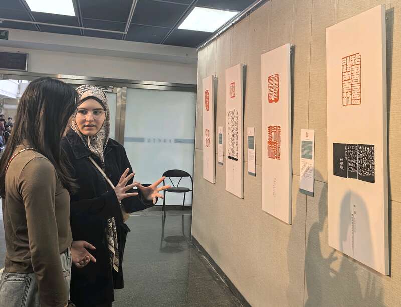 展览吸引了外国留学生参加。中青报·中青网记者王烨捷/摄
