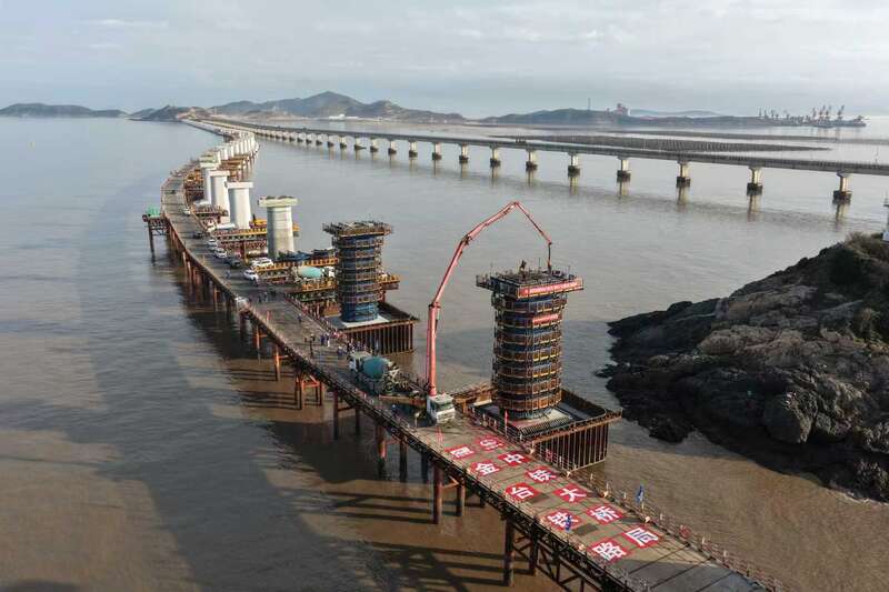 12月23日,浙江台州湾,新建铁路头门港支线二期头门新区至头门港段三分部下部结构工程全面告捷。中铁大桥局供图
