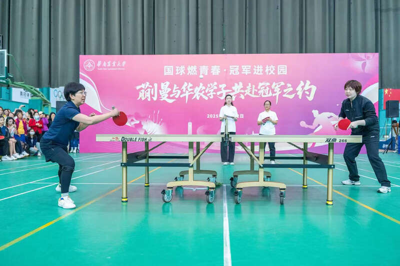 乒乓球世界冠军蒯曼受聘华南农业大学 与现场师生切磋互动