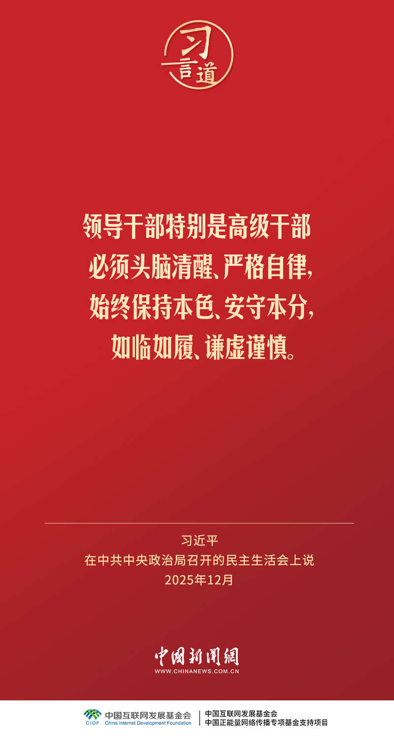 12月25日至26日,中共中央政治局召开民主生活会,中共中央总书记习近平主持会议并发表重要讲话。习近平强调——