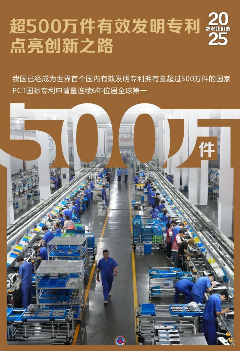 国家知识产权局数据显示,我国已经成为世界首个国内有效发明专利拥有量超过500万件的国家,PCT国际专利申请量连续6年位居全球第一。 ↓