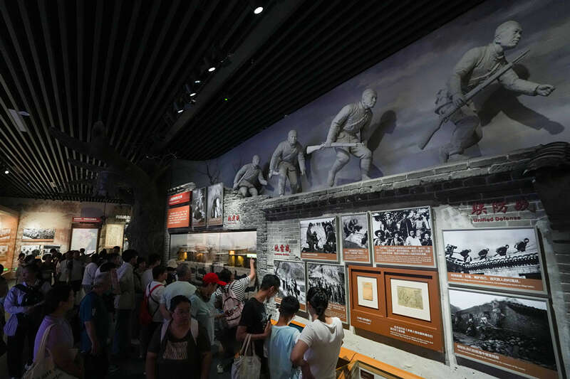 2025年7月8日,参观者在中国人民抗日战争纪念馆参观《为了民族解放与世界和平》主题展览。