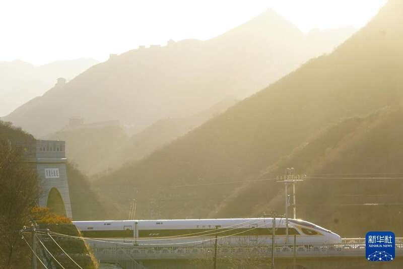 2019年12月30日,中国首条智能高铁——京张高铁开通运营。这是一辆列车驶过居庸关长城。新华社记者 邢广利 摄
