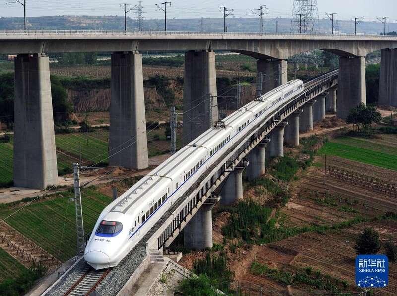 2012年7月1日,西安至延安动车组正式开通运营,一辆动车行驶在途中。新华社发(袁景智 摄)