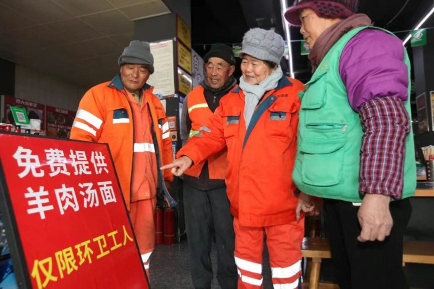 类似的新闻其实并非个例:在河南洛阳,一家饭店每天请周边的环卫工人吃晚饭,“每人一大碗烩菜加一张油饼”,这样的暖心场景,已经持续了两个多月;在河北石家庄,一早餐铺专门为环卫工人等有需要的群体提供免费早餐,已累计送出21.4万份。