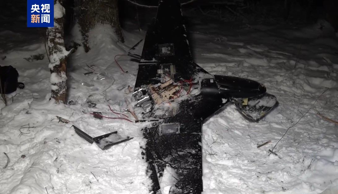 △俄国防部公布视频截图:被击落的乌克兰无人机残骸