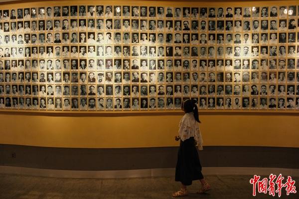 2025年8月5日,云南瑞丽畹町镇,南洋华侨机工回国抗日纪念馆,一名小游客在南侨机工英雄墙前驻足。抗日战争期间,来自马来西亚、新加坡等地的3200多名青年华侨机工回国支援,为抗日战争和世界反法西斯战争的胜利作出了不可磨灭的贡献。中青报·中青网记者 田嘉硕/摄