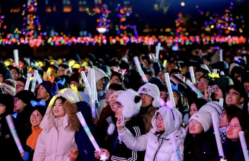 中国青年报客户端讯(中青报·中青网记者 李思)2025年12月31日跨年夜,中国科学院大学(以下简称“国科大”)师生相约在其雁栖湖校区,共同参加“聆听岁元 雁启新程”2026新年钟声跨年活动。这是国科大第七次举办跨年活动,也是该校的文化品牌活动之一。