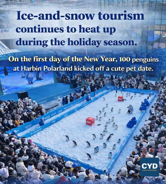Ice & snow tourism keeps heating up this holiday season! During the New Year‘s Day holiday, Harbin Polarland became extra adorable as 100 penguins waddled out for a special “cute meetup.”