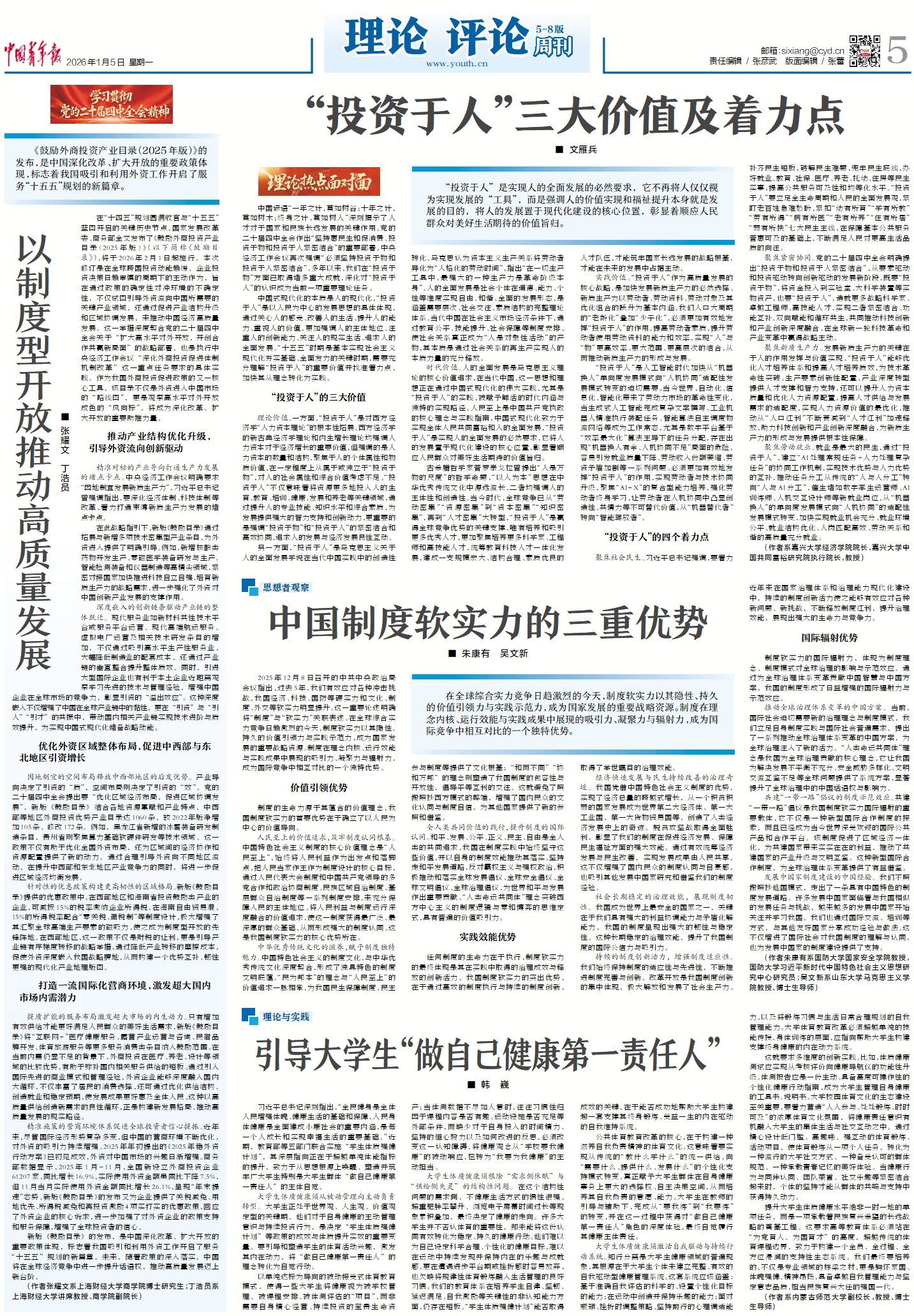 新的一年,《中国青年报》强化理论评论一体化机制,在延续理论版、大思政版、青年话题版等成熟版面品牌优势的基础上,全新设立“理论 | 青年研究”版面,并于每周一推出“理论 评论周刊”,构建全维度覆盖青年议题、贯通理论研究与青年思想引领的传播平台。
