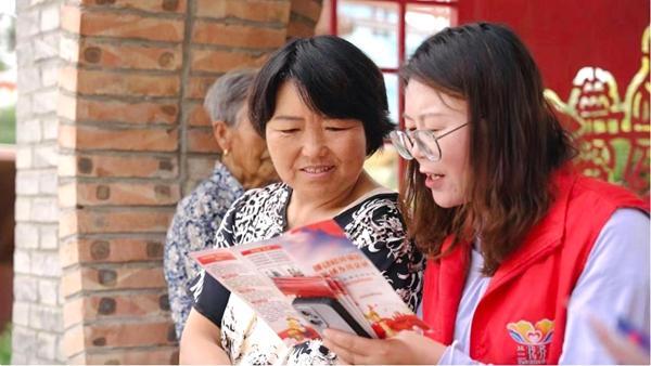 2025年8月,宁夏吴忠利通区,“新红娘”志愿服务队成员向东塔寺乡白寺滩村居民宣讲移风易俗理念。利通区委宣传部供图