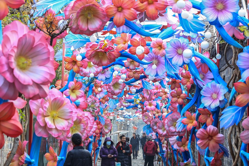 2026年1月6日,江苏南京,城南文化街区内布置灯彩,迎接农历马年。