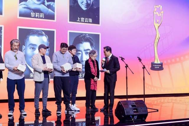 典礼特别设置了 “终身荣誉”颁发环节,向十五年来为影展做出突出贡献的六位90岁以上的前辈艺术家致敬。其中90岁以上高龄的袁霞、贺小书,黄会林、张勇手前辈亲临现场,接受了这份荣誉。而未能到场的全如玢、吴云芳老师也通过视频送上了祝福。紧接着,现场启动了纪录影片 《和光同尘 银幕上下》的拍摄计划,并邀请了师伟、李明启、王苏娅,以及丁荫楠、高放、黄健中、宋崇、刘建中等在内的共十二位“80后”、“90后”老艺术家齐聚舞台,接受了少先队员的献花,这些影坛常青树们共同为这部记录他们艺术人生的纪录片打板开机。这一系列环节不仅表达了对历史的铭记,更完成了电影精神从前辈到后辈的直观传递,场面庄严而温暖。