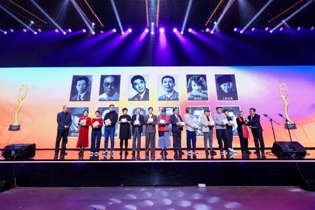 值此中国电影诞生120周年之际,典礼特别设置了致敬环节。导演江平与到场嘉宾共同主持了《夏衍剧作十种》赠书仪式。表演节目的儿童合唱团成员,从聂耳的侄孙青山、田汉的外孙张红心、赵丹的外孙刘亦洋、汪洋的外孙女杨峥、黎莉莉的外孙女潘婕、上官云珠的侄孙女韦玮、邢吉田的侄孙史磊、于蓝的孙子田川、谢铁骊的外孙王孺童、石羽的孙子石兆刚、朱今明的外孙石欣、王家乙的外孙女张驰12位老一辈艺术家的后人手中,接过了这份承载着电影历史与精神的珍贵礼物。随后,中国电影基金会理事长张丕民与学术顾问黄会林教授,又为这12位嘉宾赠书。这一环节寓意深远,将中国电影的艺术精神与历史责任,生动地传递给了下一代。