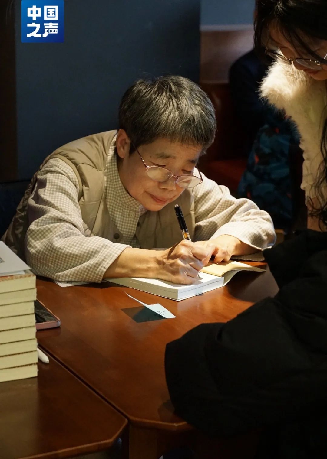 那篇《老伴的生平》真的得了奖。她说,“要是我老伴还活着的话,那肯定就多了一个炫耀的话题,走到哪儿都会说,我老伴出书了。也可能他包里始终背着几本书,你们看看吧,给你一本。”