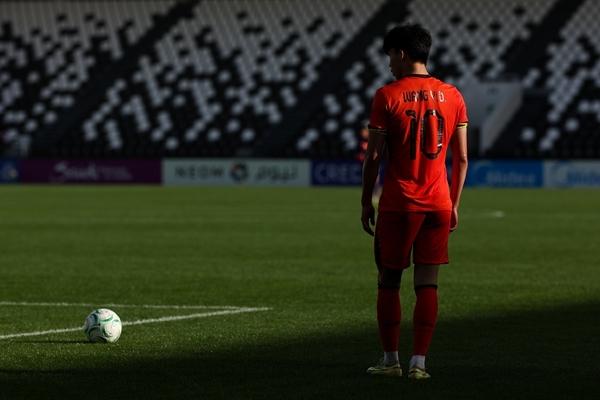 1月11日,沙特阿拉伯,2026U23亚洲杯小组赛,中国队对阵澳大利亚队的比赛中,王钰栋准备开出定位球。视觉中国供图