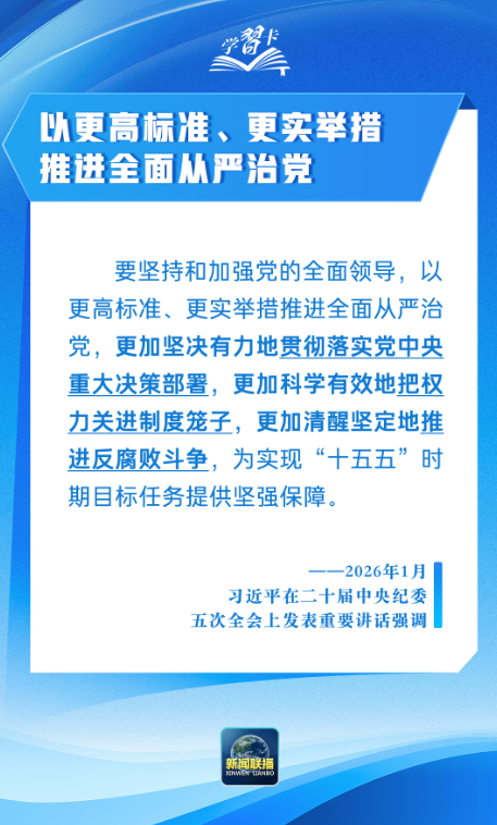 中国共产党第二十届中央纪律检查委员会第五次全体会议12日在北京开幕。习近平总书记发表重要讲话强调,以更高标准、更实举措推进全面从严治党,为实现“十五五”时期目标任务提供坚强保障。