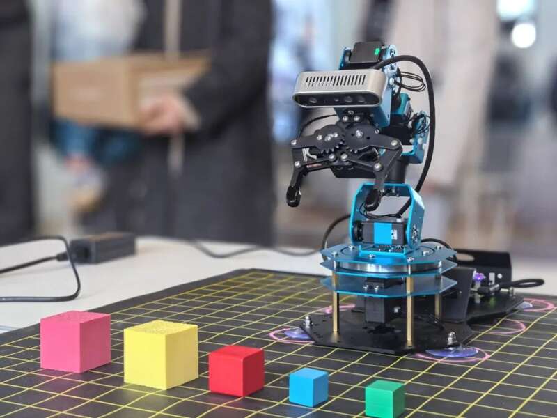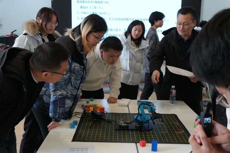 比赛设计别具匠心,分为“基础任务项”和“满分冲刺项”两个环节。基础任务中,各组需在15分钟内通过控制机械臂,完成对不同尺寸、不同颜色、不同材料物块的抓取与精准放置,行进路径中还需进行角度旋转——看似简单的动作,实则对机器人动力学控制的精度提出了较高要求,每一个细节都在考验学生的专业功底。