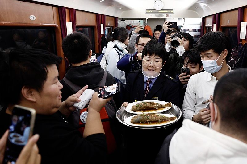 2026年1月12日,Z99次列车乘务员、工作人员在铁路上海站站台上合影。当日17时19分,最后一班Z99次列车缓缓驶离铁路上海站,驶向广州白云站。这趟经典的直达特快列车,将完成作为“绿皮车”的历史使命。根据安排,全国铁路将于1月26日零时起实施新的列车运行图。运行近29年的沪穗间Z99/100次直达特快列车将正式升级为动车组列车运行。Z99次列车的前身是1997年5月19日开通的沪港直通车K99次列车,该列车最初运行于上海与香港九龙站之间,全程运行时间约29小时。 中新社记者 殷立勤 摄