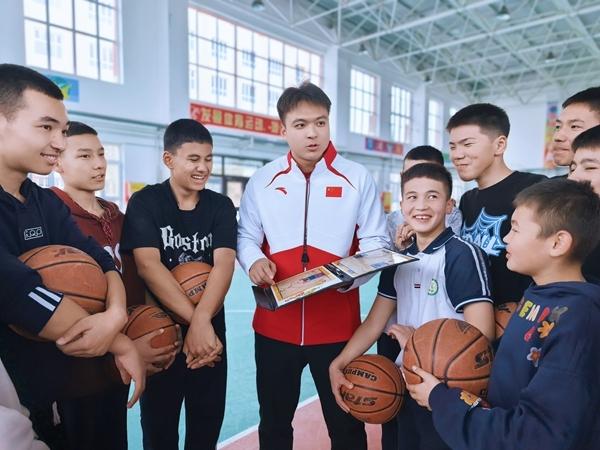 去年9月,刘馨泽第二次来到新疆支教,这一次他的服务单位是新疆昌吉回族自治州玛纳斯县第四中学。这一次,刘馨泽在给初中生上体育课的同时,还组织起了学校篮球队。刘馨泽发现,新疆孩子的身体素质很好,对于很多学习成绩不算特别优异的孩子来说,完全可以通过发展体育特长,拓宽升学道路。刘馨泽通过组织学校篮球队,给一批身体素质较好又喜欢篮球的孩子提供了一条体育升学的途径。