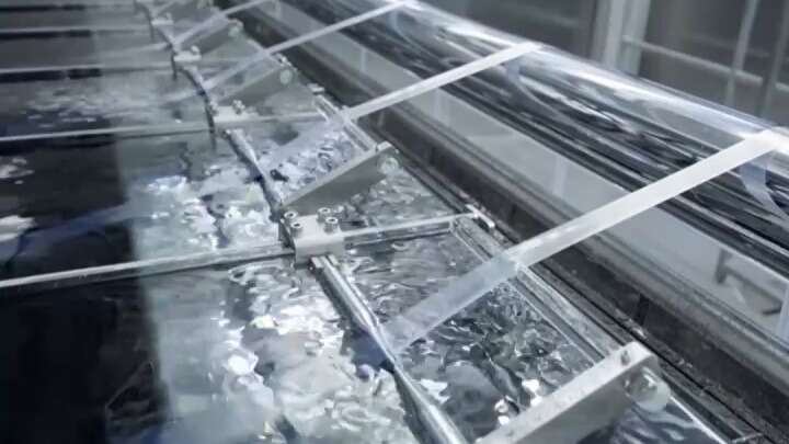 我现在就来到了碳纤维的诞生地的摇篮,可以看到化合物在这里聚合之后,通过干喷湿纺的工艺,就像在这样一个池子里生命的摇篮一样诞生了这样的一个原丝。