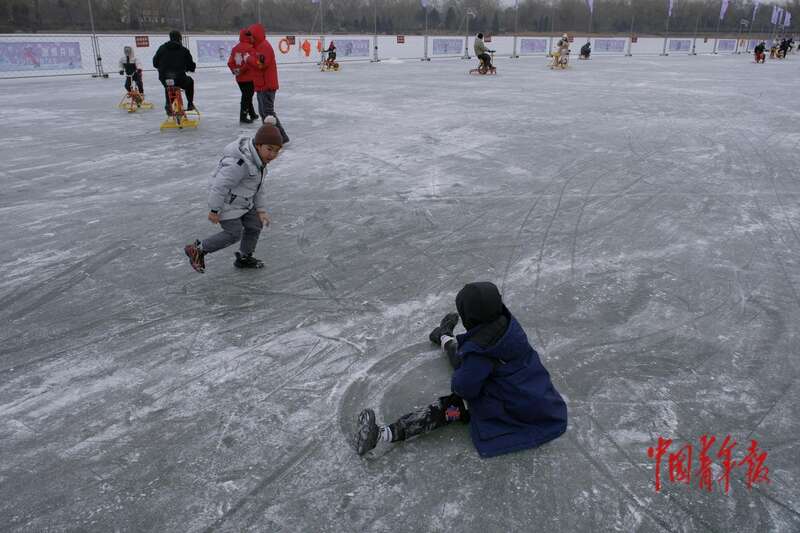 1月17日,北京玉渊潭公园,孩子们在冰场上玩耍。中青报·中青网记者 田嘉硕/摄