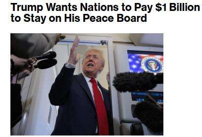 中新网1月18日电 据彭博社当地时间17日报道,美国总统特朗普开出10亿美元捐款的价码,供有意愿参与所谓“和平委员会”的国家获得永久席位,不受三年任期限制。