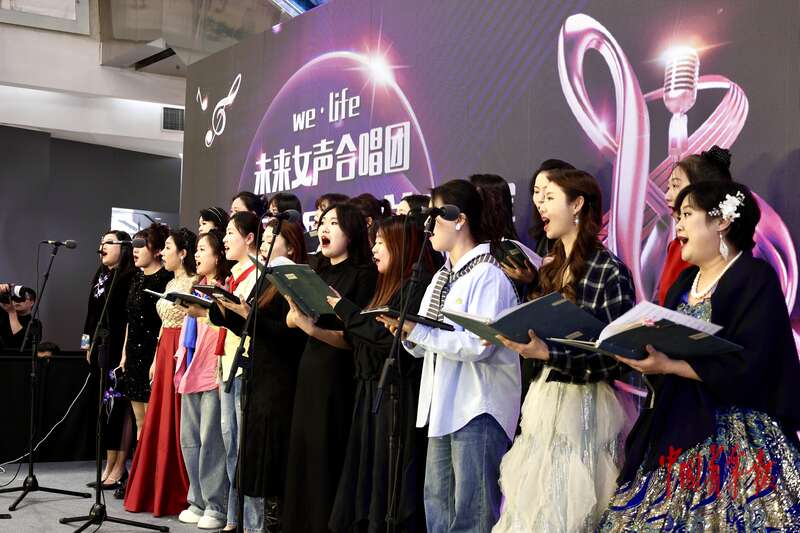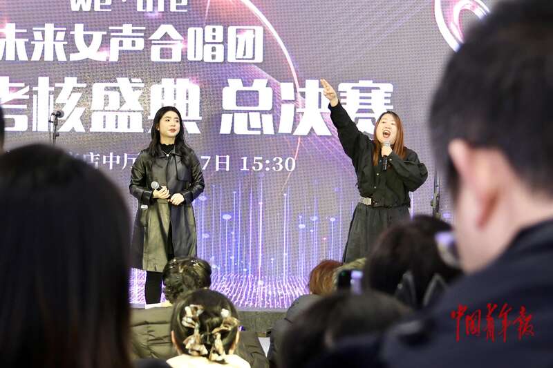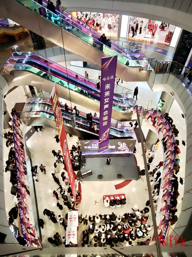 1月17日,黑龙江哈尔滨,“未来女声合唱团”走进学府凯德广场,为市民带来演出。这个2022年6月成立的民间合唱团,由一群平均年龄30岁左右的女孩组成。她们来自各行各业,有大学教师、医生、法官、公务员、家居设计师等。她们正用青春和歌声叩响这座“音乐之城”的未来之门。中青报·中青网记者 杨雷/摄