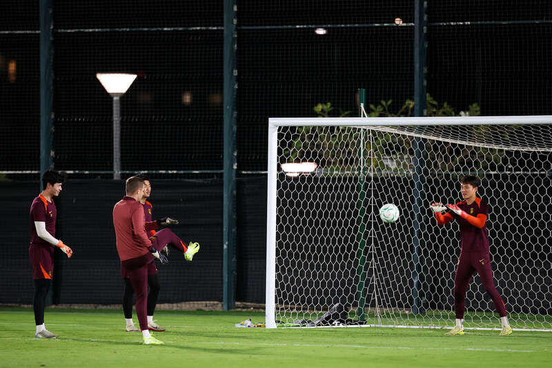 当地时间2026年1月19日,2026U23亚洲杯半决赛赛前,中国队三位门将正在训练备战。视觉中国供图