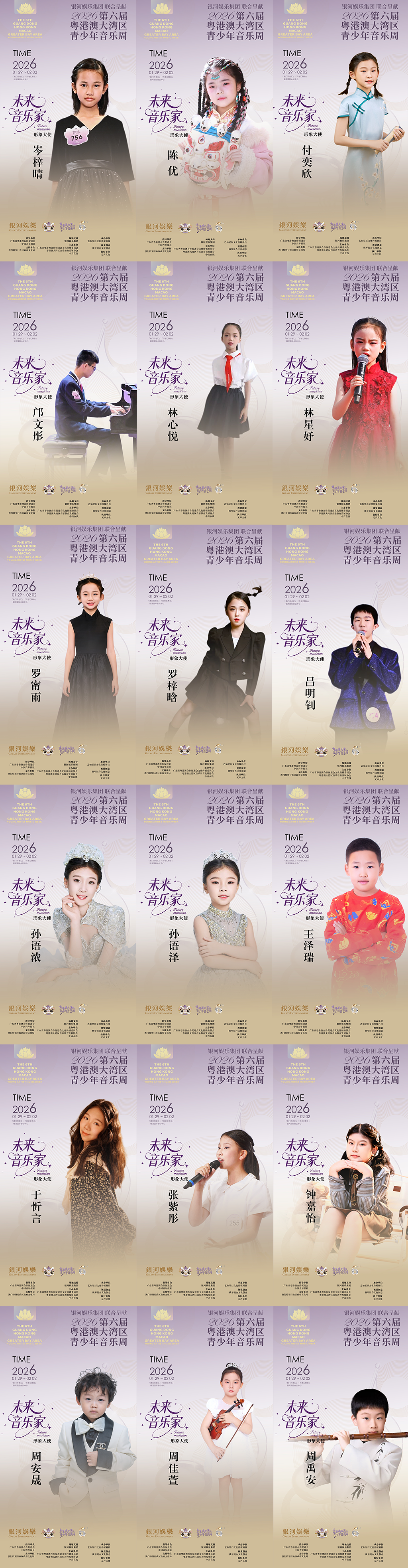 第六届粤港澳大湾区青少年音乐周“未来音乐家”网络展示活动由音乐周组委会与中青在线共同主办。经个人申报、展示遴选等环节,共推选出18名“未来音乐家”形象大使,现予以公示。公示期为2026年1月23日至1月28日。公示期内有任何意见或建议可向主办单位反映。