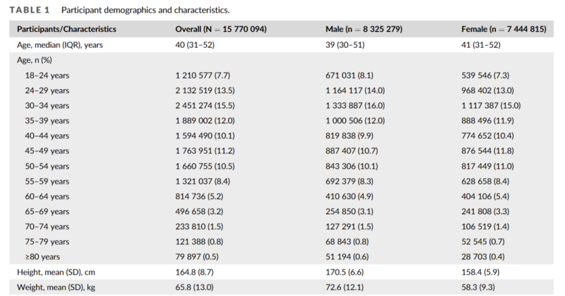一个中国的研究数据(下图)显示,超重和肥胖的总体患病率在不同年龄人群中的趋势会有所不同,基本上也是从24~29年龄阶段开始,肥胖率增加;在中年男性(55~59岁)和老年女性中达到峰值(65~69岁)。