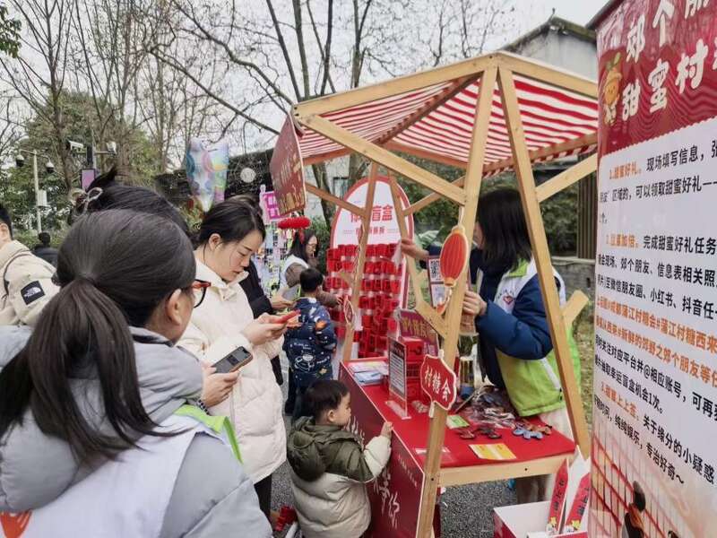 首届蒲江县“村糖会”期间,许晋晋主动扛起重任,负责3个特色摊位的搭建、展销统筹与现场服务工作。连续三天的昼夜忙碌,换来了活动话题线上浏览量突破2万次、惠及数千名游客的亮眼成效。