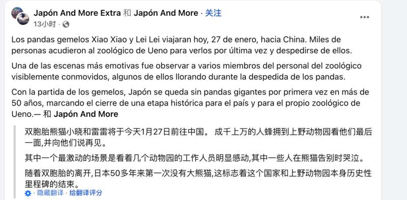 中国青年报客户端讯(中青报·中青网记者 赵婷婷)“对上野动物园而言,它们极其重要,并且能带动人们对所有动物的关注。”日本熊猫协会会长、上野动物园园长土居利光告诉日本共同社,在该动物园的近300种动物中,只有大熊猫能够在从自然生态到文化传播的多个维度产生辐射效应。