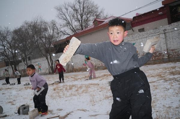 1月18日清晨7点半,天蒙蒙亮,河北省保定市莲池区五尧乡南沟头村的乡间路上,一群孩子迎着风雪向前奔跑,雪花落在他们汗湿的头发上,瞬间结成一层薄薄的白霜,远远望去,像一顶顶蓬松的雪绒帽。