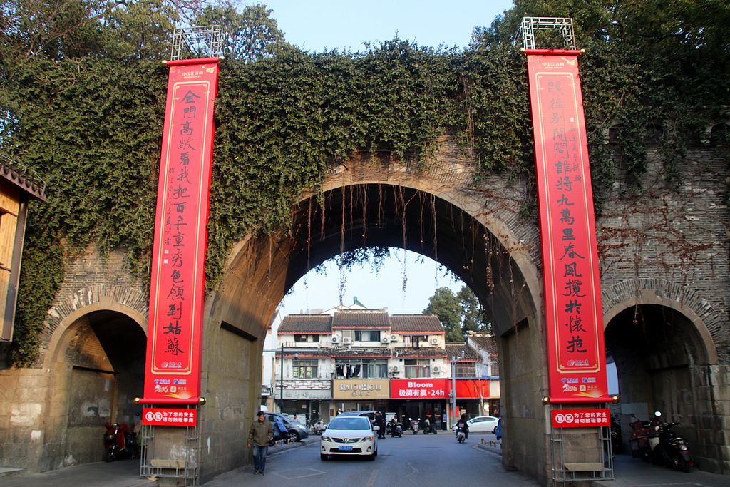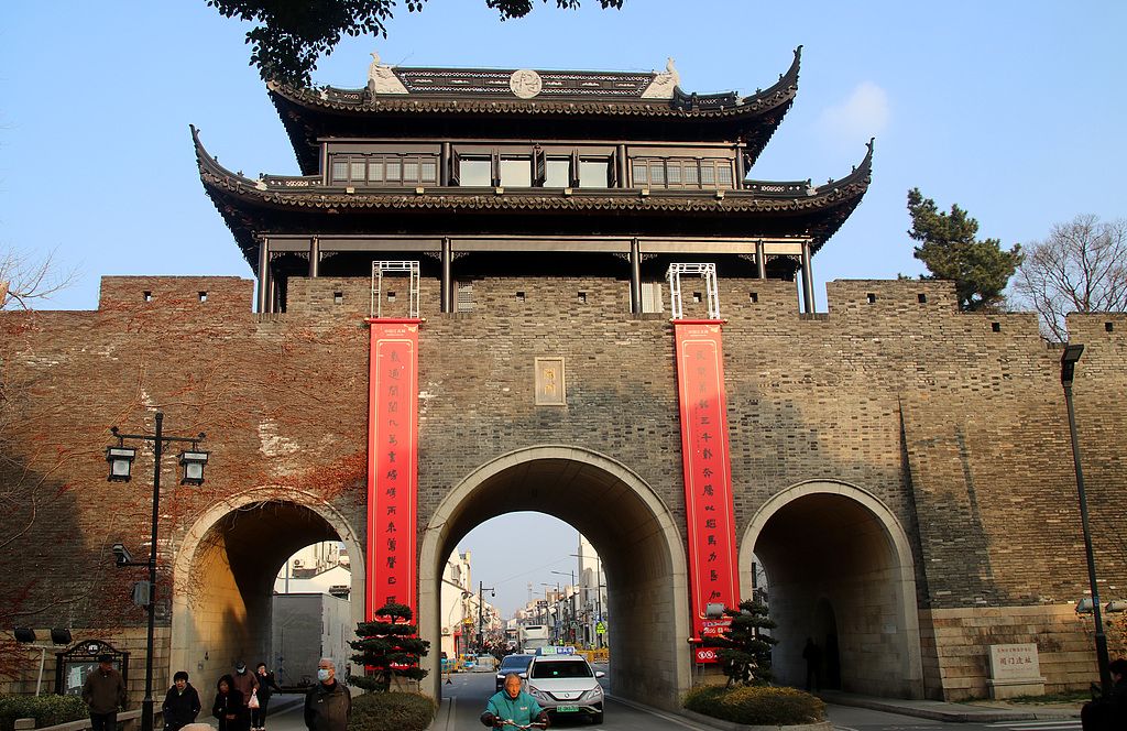 2026年1月28日,江苏省苏州市姑苏区金门、阊门等9大古城门陆续挂起巨幅春联。