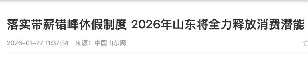 政府工作报告显示,2026年山东要全力释放消费潜能。深入实施提振消费专项行动,全面打响“好品山东 商行天下”品牌,实施城乡居民增收计划,落实带薪错峰休假制度,清理消费领域不合理限制措施。