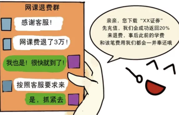 A市民收到顶端标有“全国12315平台”醒目字样的短信图片,标题为《一兆韦德退费公告》,声称清退学费。该市民联系“客服专员”后,被以“购买理财产品退费”“充值返利”“做任务”等名义骗走1.5万余元。